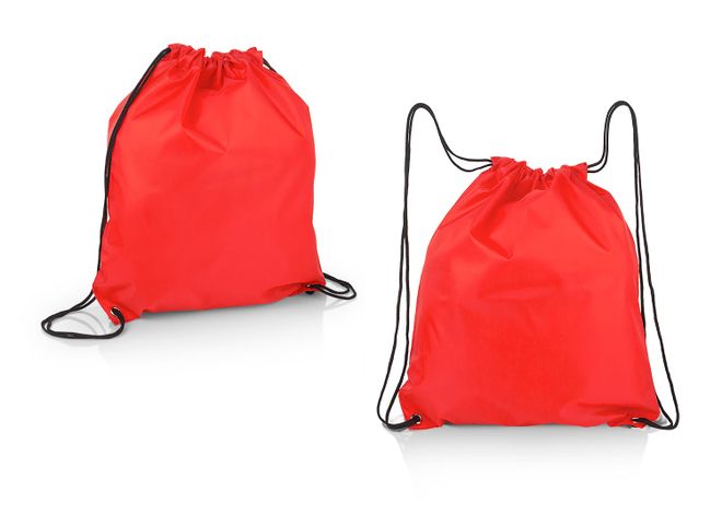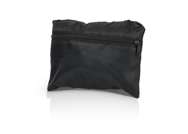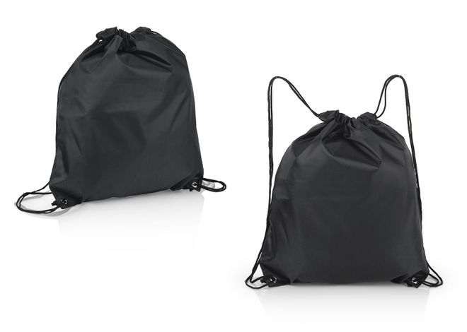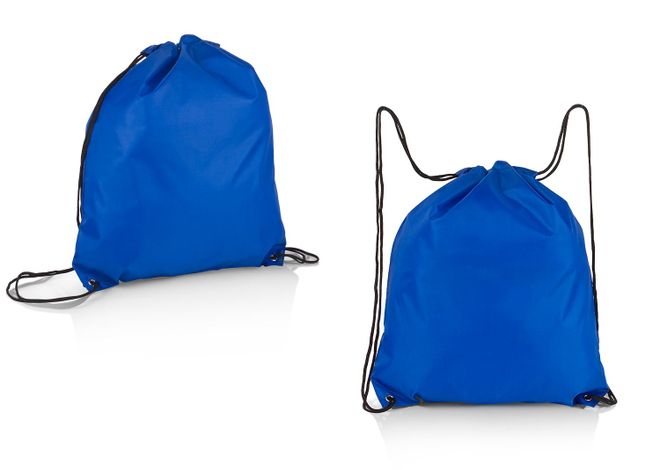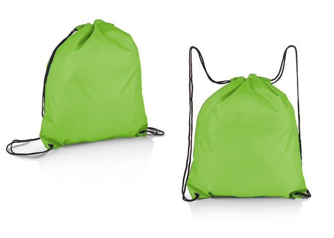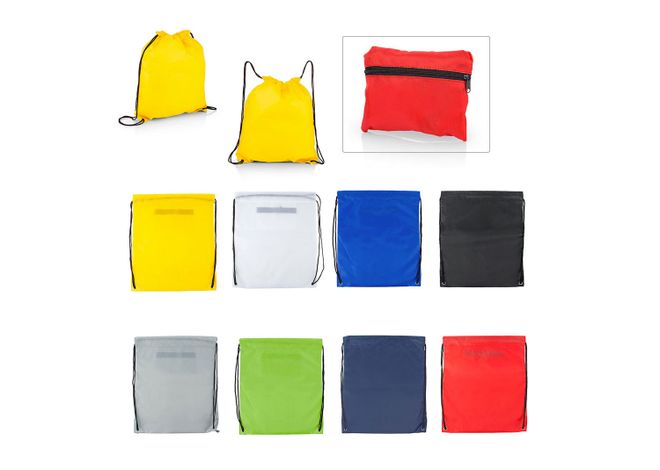 Mochila plegable con doble cordón para ajustar que sirven como cargaderas, bolsillo interno con cremallera.